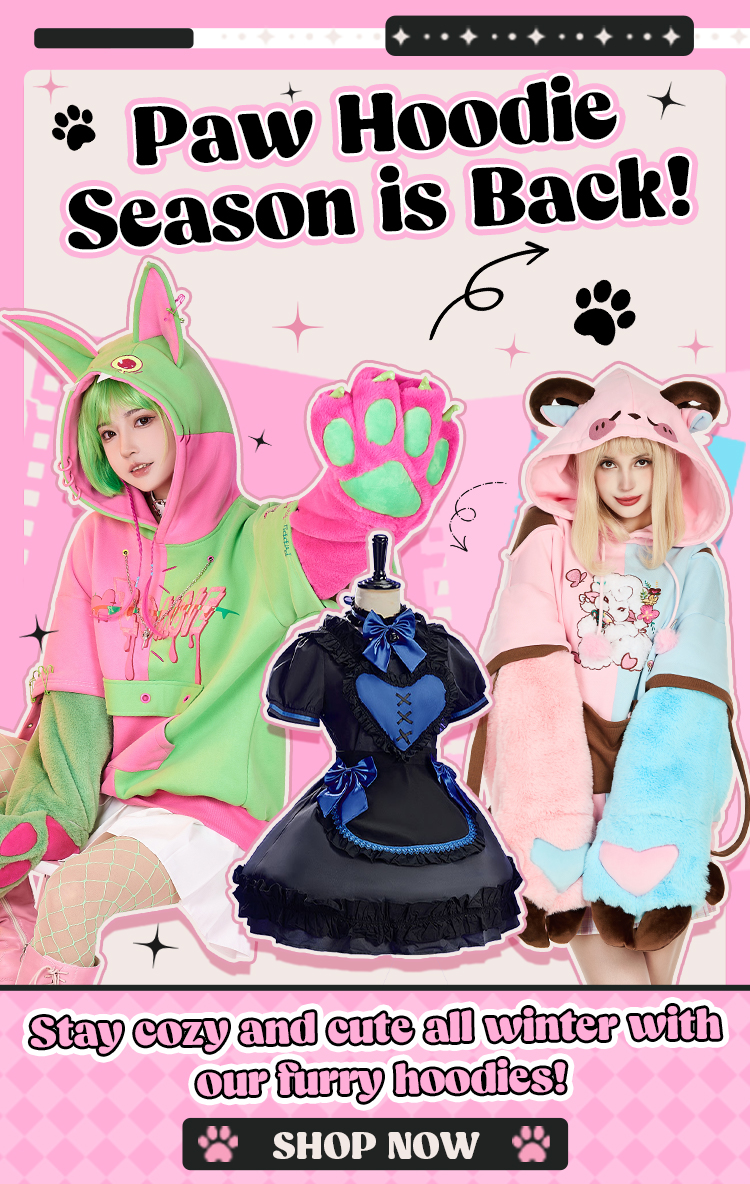 Bounce Bunny Black Pink Cross Print Pullover Hoodie with Detachable Furry Cat Paw Gloves$81.99 $57.99